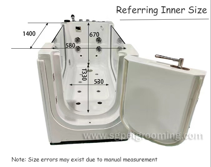 La bañera de hidromasaje de ozono para mascotas Sangle, con puerta de acceso, está diseñada para la increíble terapia de ozono para mascotas y para la prevención de diversas dolencias y enfermedades de la piel y el pelaje. Está diseñada para uso profesional por peluqueros y perreras, así como para dueños de mascotas que desean cuidar a fondo el pelaje y la piel de sus mascotas.
